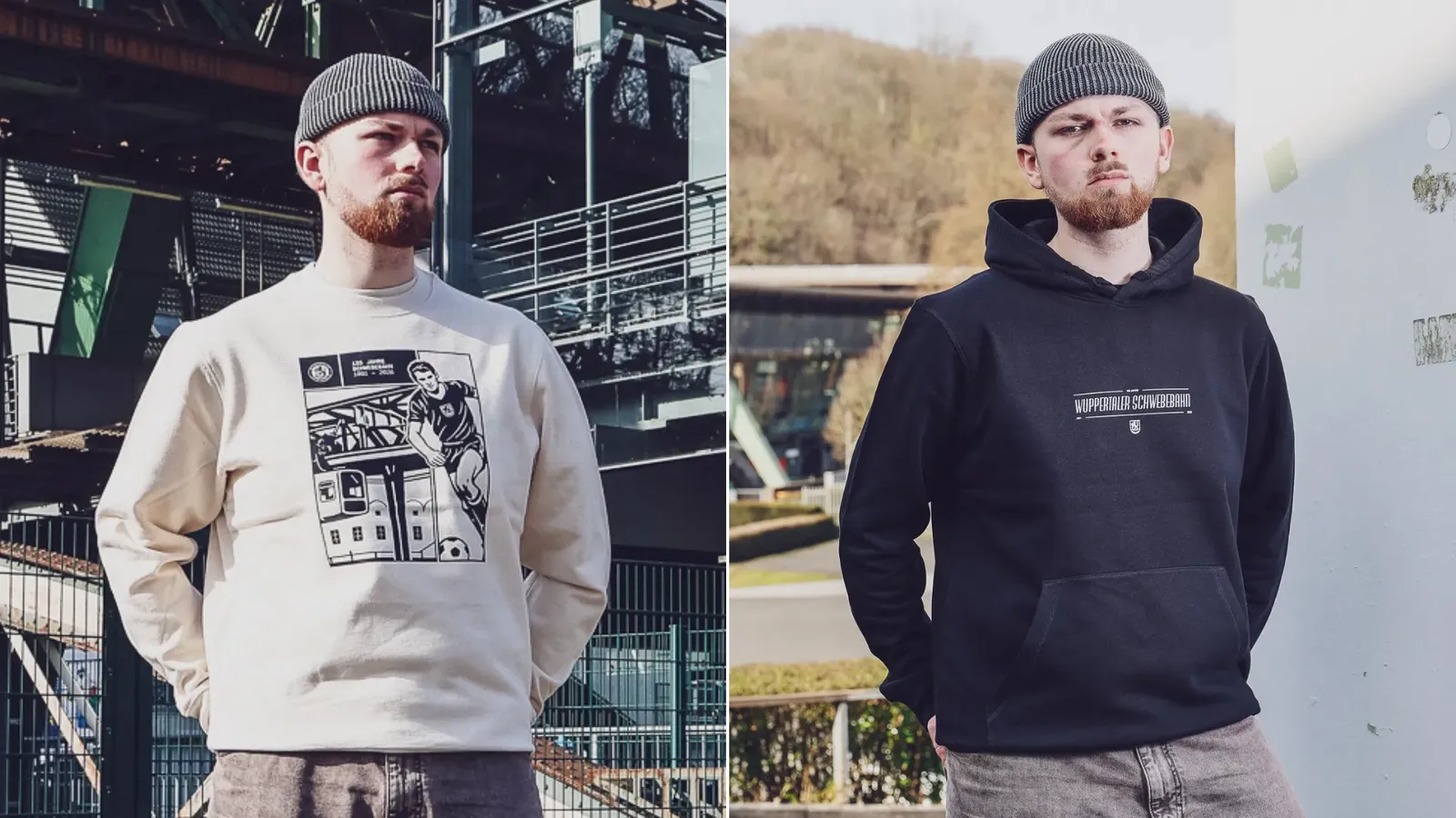 Die Designs greifen Motive der Schwebebahn und der Stadt auf — als Zeichen für Zusammenhalt, Tradition und die tiefe Verwurzelung des Wuppertaler SV in Wuppertal.